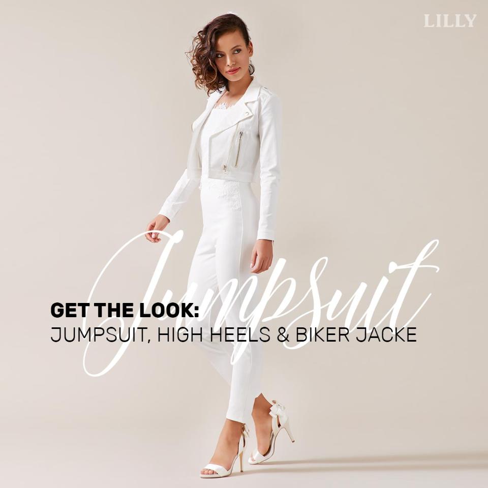 Beim Thema Mode und Trends gehen Sie keine Kompromisse ein! Bei Ihrem Hochzeits-Outfit erst recht nicht! Wie wäre es mit unserem Hosenanzug und einer cremefarbenen LILLY Biker-Jacke? Außergewöhnlich, sexy und garantiert nur für starke Nerven!